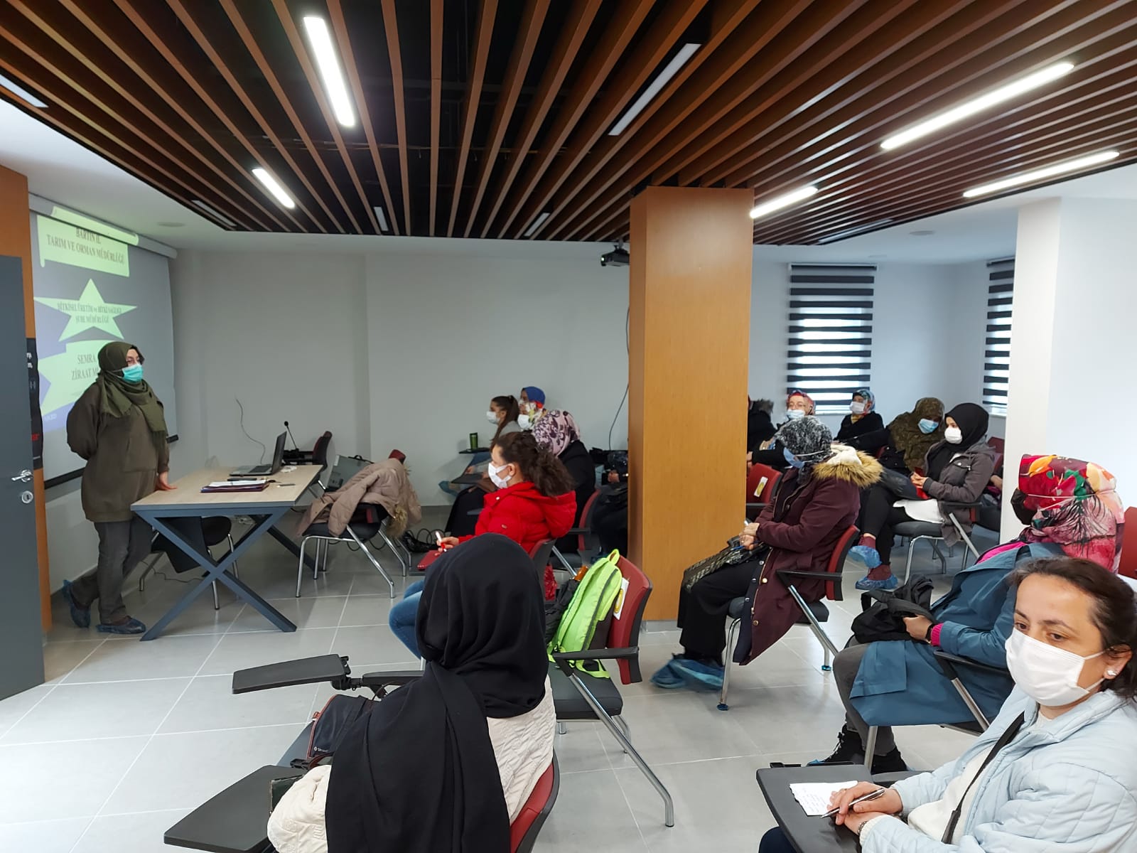 Tarımsal üretim yapmak isteyen, hevesli ve değişime açık gönüllü kursiyerler belirlenmiş ve Sertifikalı mesleki eğitim kurslarından “Örtü Altı Sebze Yetiştiriciliği” ve “İyi Tarım Uygulamaları” eğitimleri için Kozcağız bulunan, Bartın kadın mesleki beceri ve eğitim merkezi ve Yeni terminal binası toplantı salonunda 25 kişilik gruplar halinde 50 kadın çiftçi adayımızla bu gün dersler başlamıştır. Kurslarımız iki eğitim yerinde eş zamanlı başlamıştır. Pandemi şartları dikkate alınarak eğitimler yapılmaktadır.